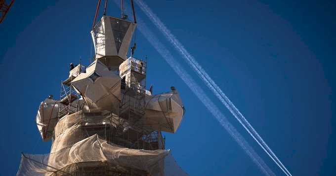 The scaffolding surrounding the central tower is expected to be removed by June, in time for the inauguration of the “Tower of Jesus Christ,” the church said.
