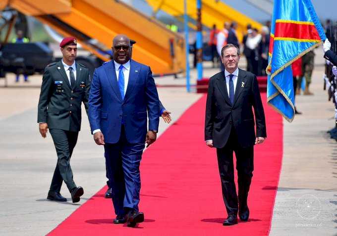 Le président Israélien en visite de travail à Kinshasa. Il a été accueilli par son homologue congolais, le président Félix Antoine Tshisekedi Tshilombo avec des honneurs militaires.
