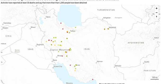 The growth of the protests increases the pressure on Iran’s civilian government and its Supreme Leader Ayatollah Ali Khamenei. CloudFlare, an internet firm, and the advocacy group NetBlocks reported the internet outage, both attributing it to Iranian government interference. Attempts to dial landlines and mobile phones from Dubai to Iran could not be connected. Such outages have in the past been followed by intense government crackdowns.